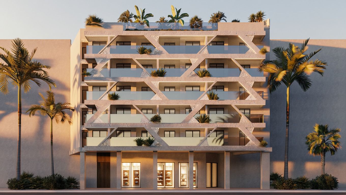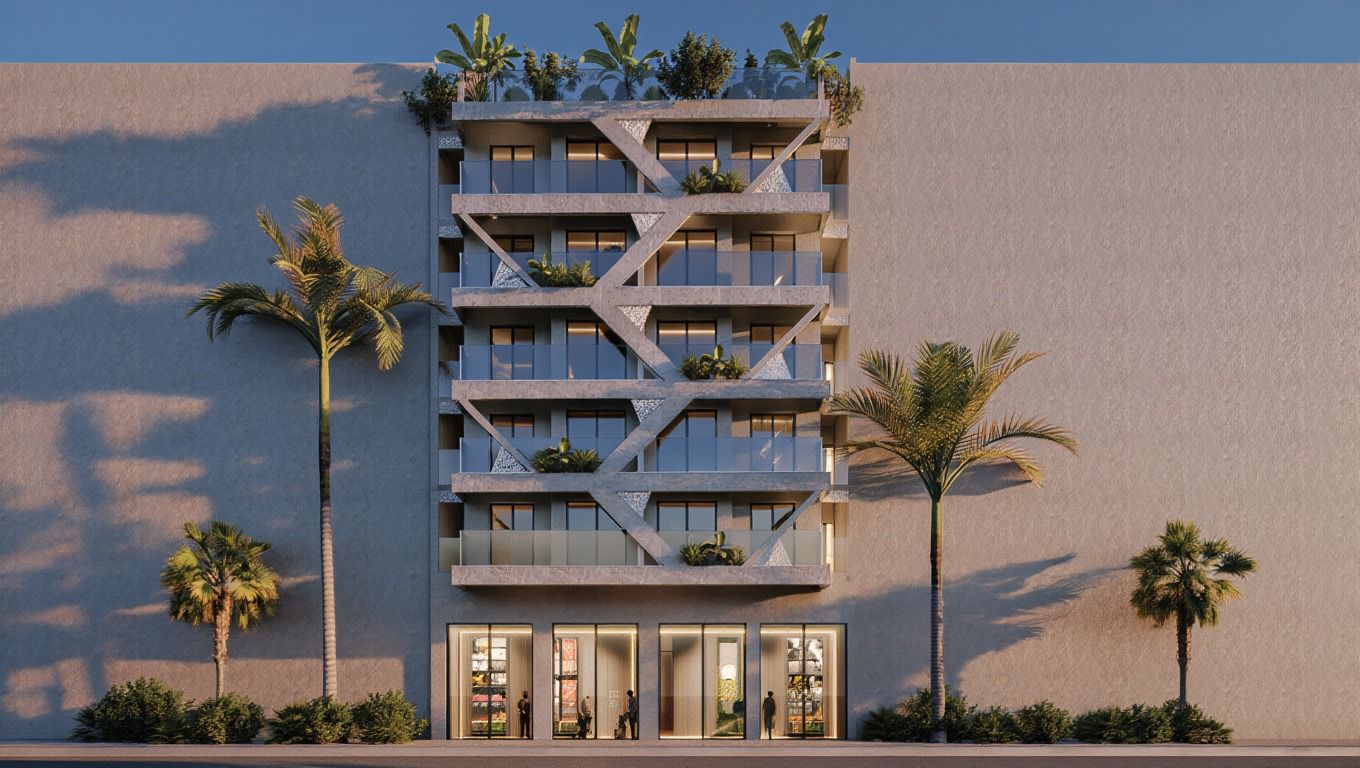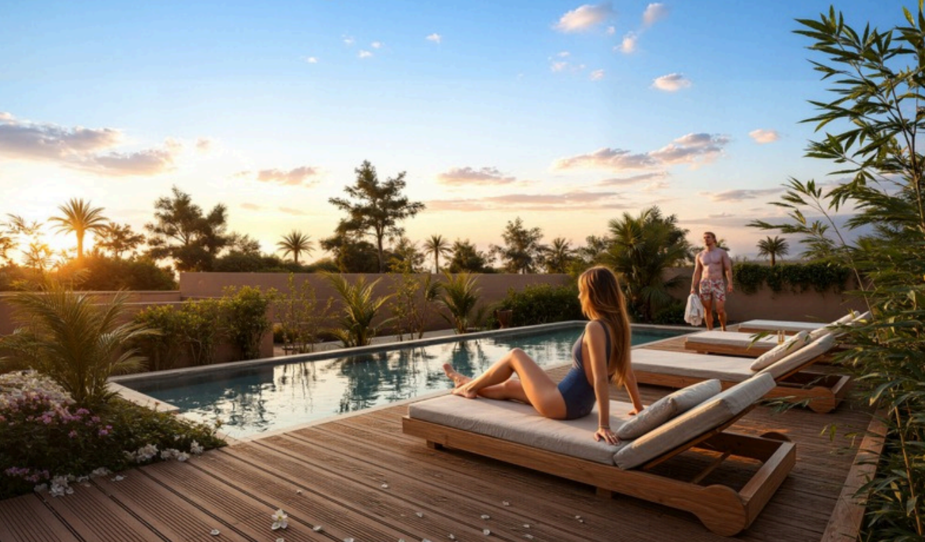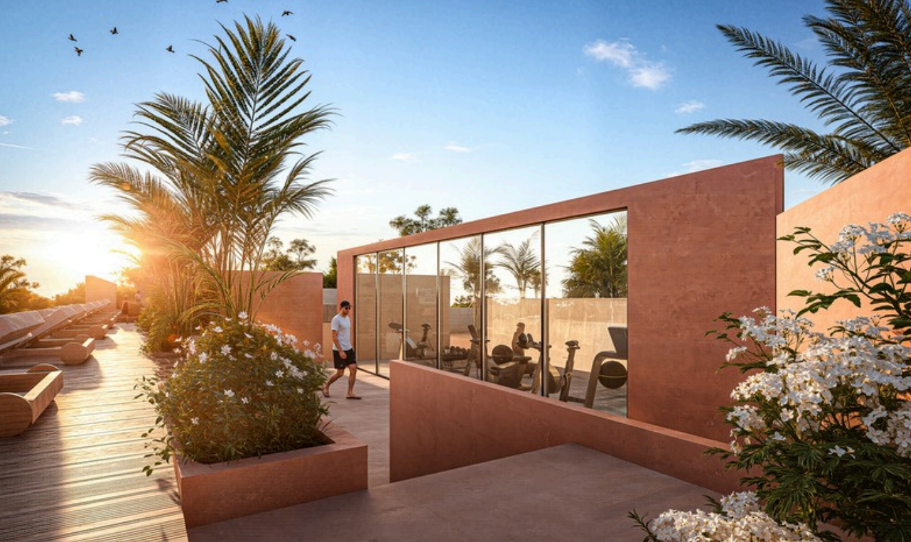 Découvrez une résidence contemporaine à Marrakech proposant des studios de 39 à 57 m² et des appartements 2 chambres de 59 à 62 m², tous orientés soit sur la piscine, soit sur la façade extérieure pour une luminosité maximale.