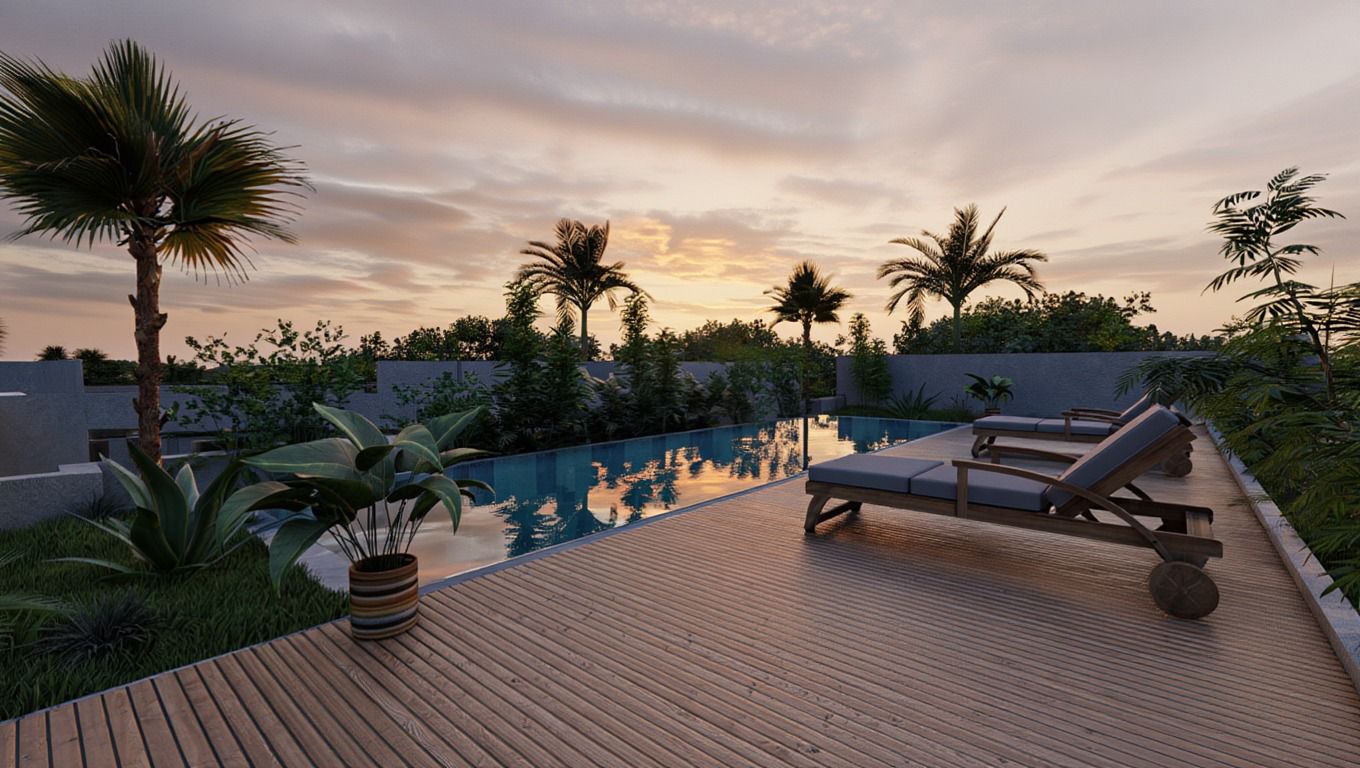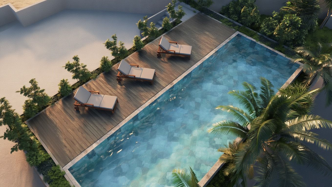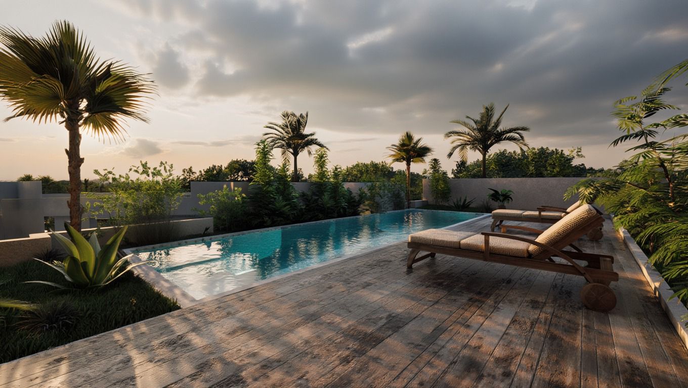 Découvrez une résidence contemporaine à Marrakech proposant des studios de 39 à 57 m² et des appartements 2 chambres de 59 à 62 m², tous orientés soit sur la piscine, soit sur la façade extérieure pour une luminosité maximale.